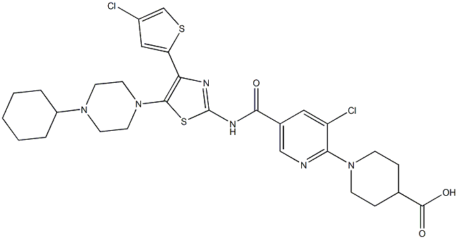 1-[3-Chloro-5-[[[4-(4-chloro-2-thienyl)-5-(4-cyclohexyl-1-piperazinyl)-2-thiazolyl]amino]carbonyl]-2-pyridinyl]-4-piperidinecarboxylic acid